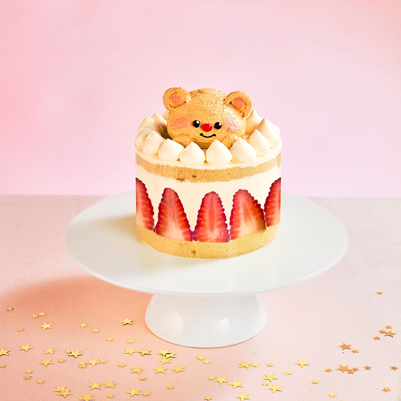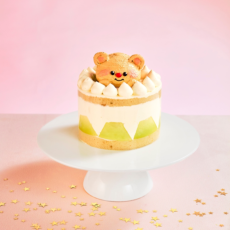 This limited-edition version of our signature 12.5cm melon and strawberry chiffon cake features light and fluffy sponge layers filled with airy dairy cream and fresh fruits. Topped with one hand-piped butter bear meringues – making it as adorable as it is delicious.