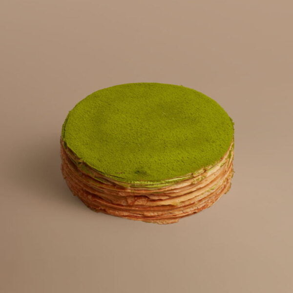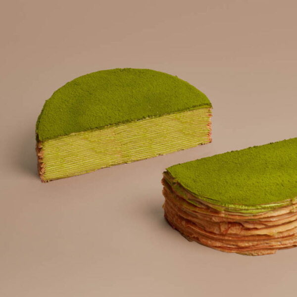 Handmade paper-thin crepes layered with premium Marukyu Koyamaen matcha cream. Aromatic and rich, with complex earthy flavours.