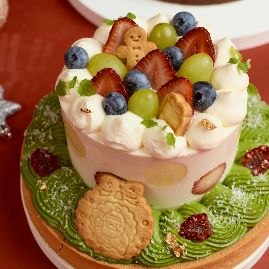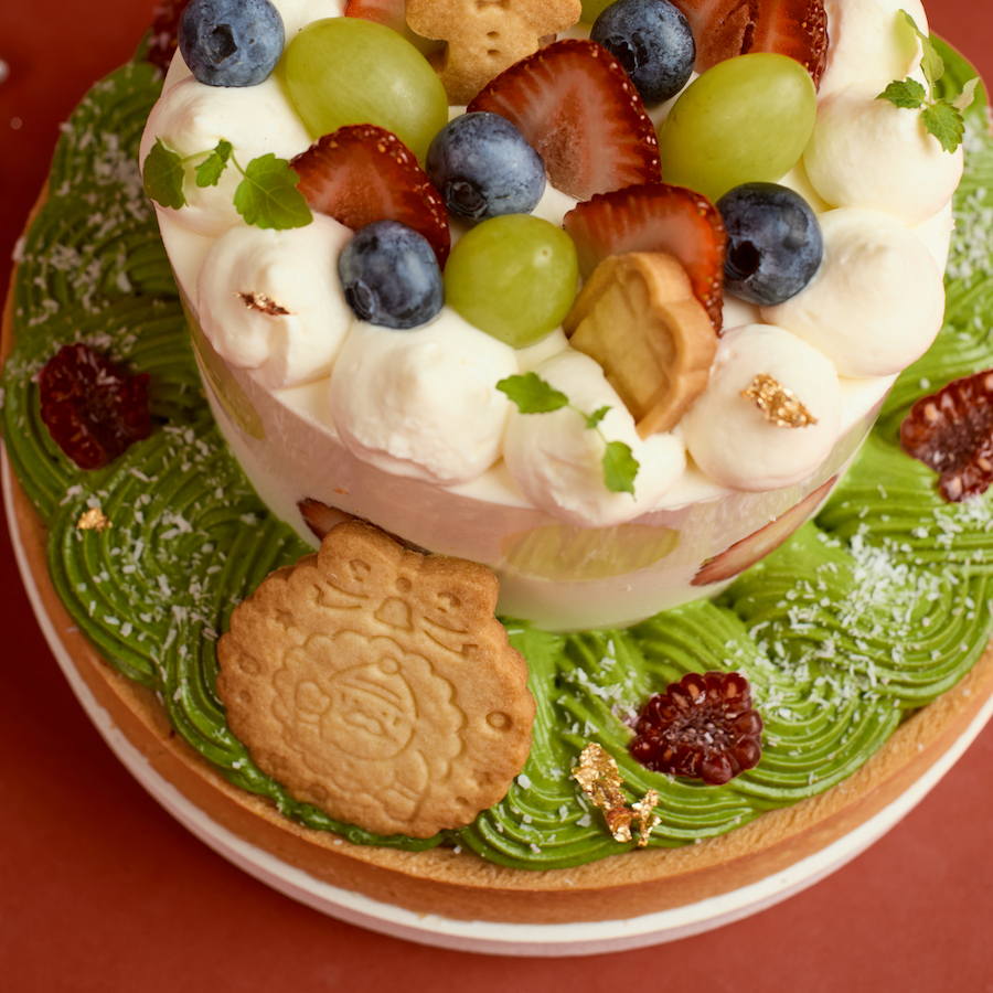 A delicate balance of flavours featuring matcha mascarpone cream, homemade strawberry jam with fresh strawberries, and soft vanilla chiffon sponge, all nestled in a buttery vanilla tart shell with a touch of genmaicha corn crunch for the perfect finish.