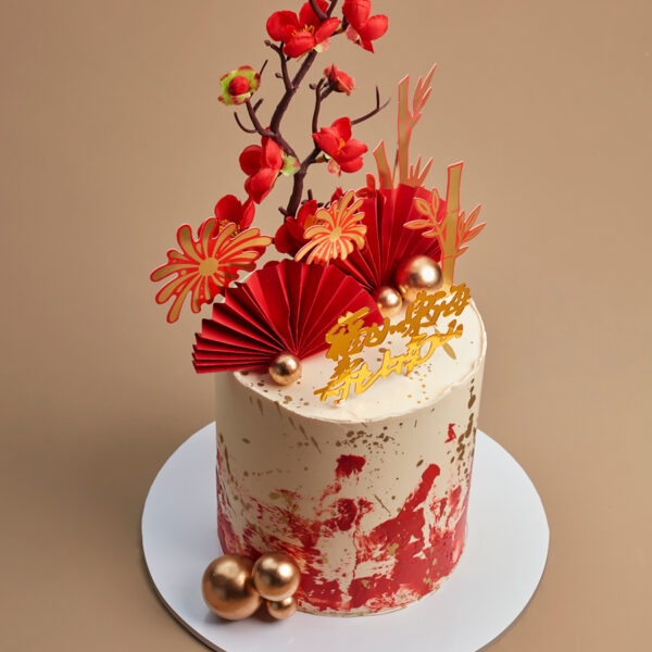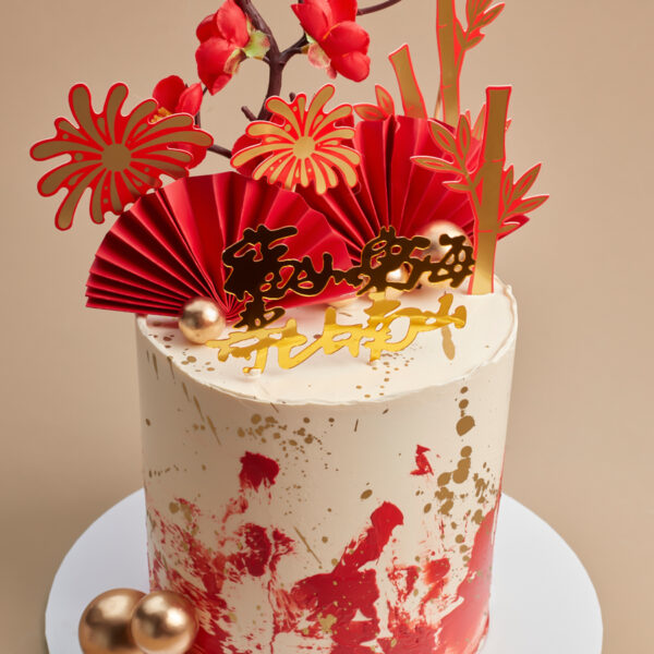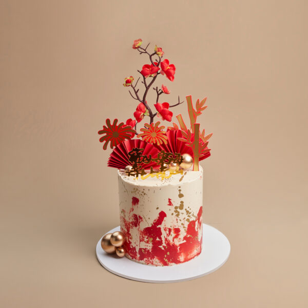 An adorable red Chinese-themed baby dragon cake, crafted with precision and charm, features a playful design that brings joy to celebrations. The cake is not only visually delightful with its cute dragon figure but also boasts a delectable flavor that adds sweetness to any special occasion.